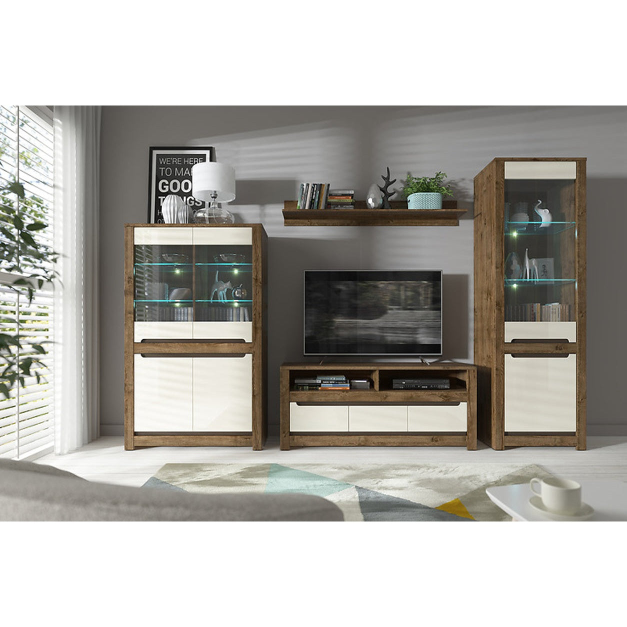 The Ruso TV stand is the perfect piece for creating a functional entertainment zone in your living room. It features 3 compact drawers for small items and 2 open shelves for placing devices like decoders. Two ventilation openings ensure proper air circulation, allowing cables to be neatly managed.