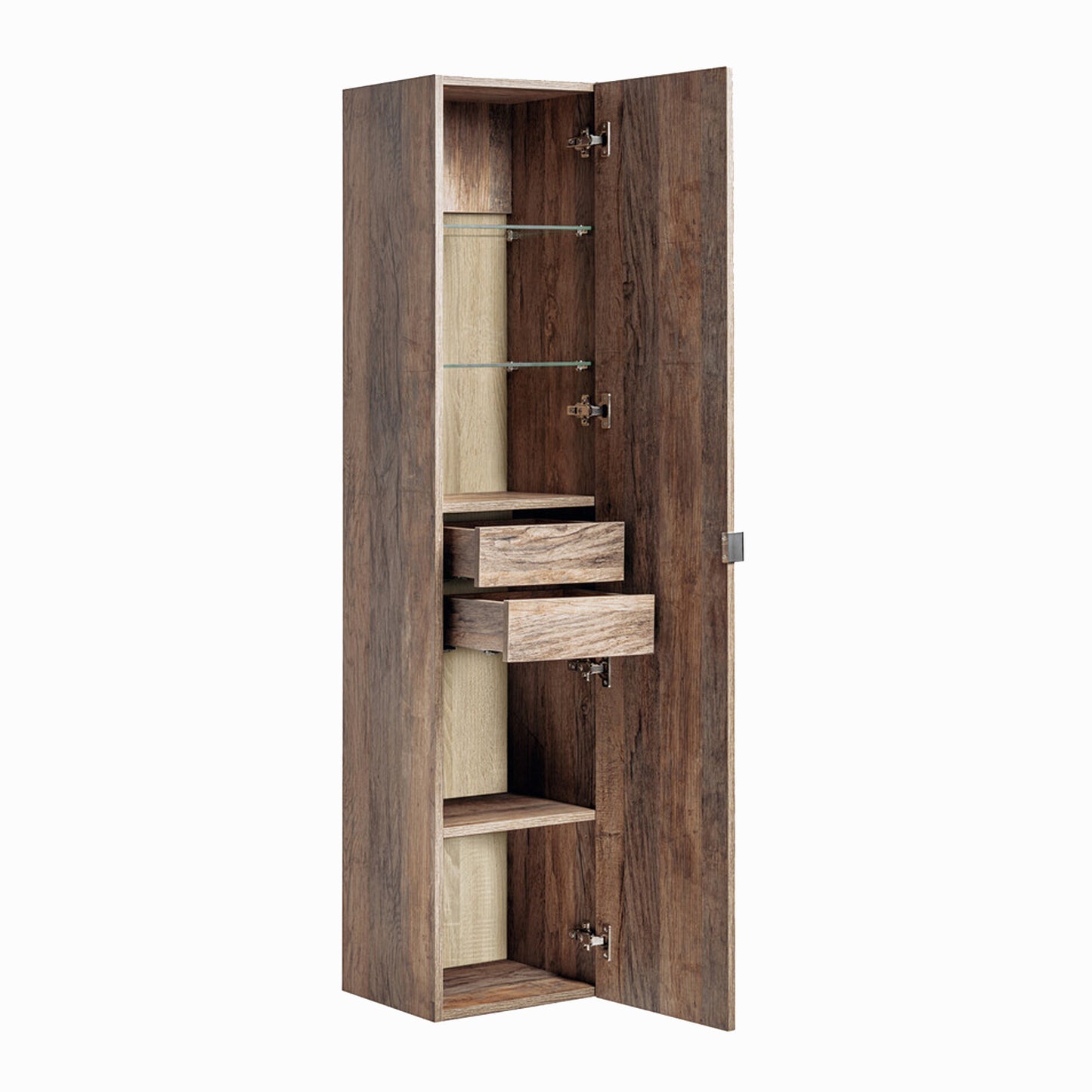 Add rustic style and extra vertical storage to your bathroom with the Santa Fe Bathroom Vanity Tall Unit. Designed with a textured wood-effect finish and clean, minimalist lines, this tall cabinet offers a practical solution for keeping your space tidy while enhancing the natural character of your interior. Its slim silhouette makes it ideal for both small and large bathrooms.