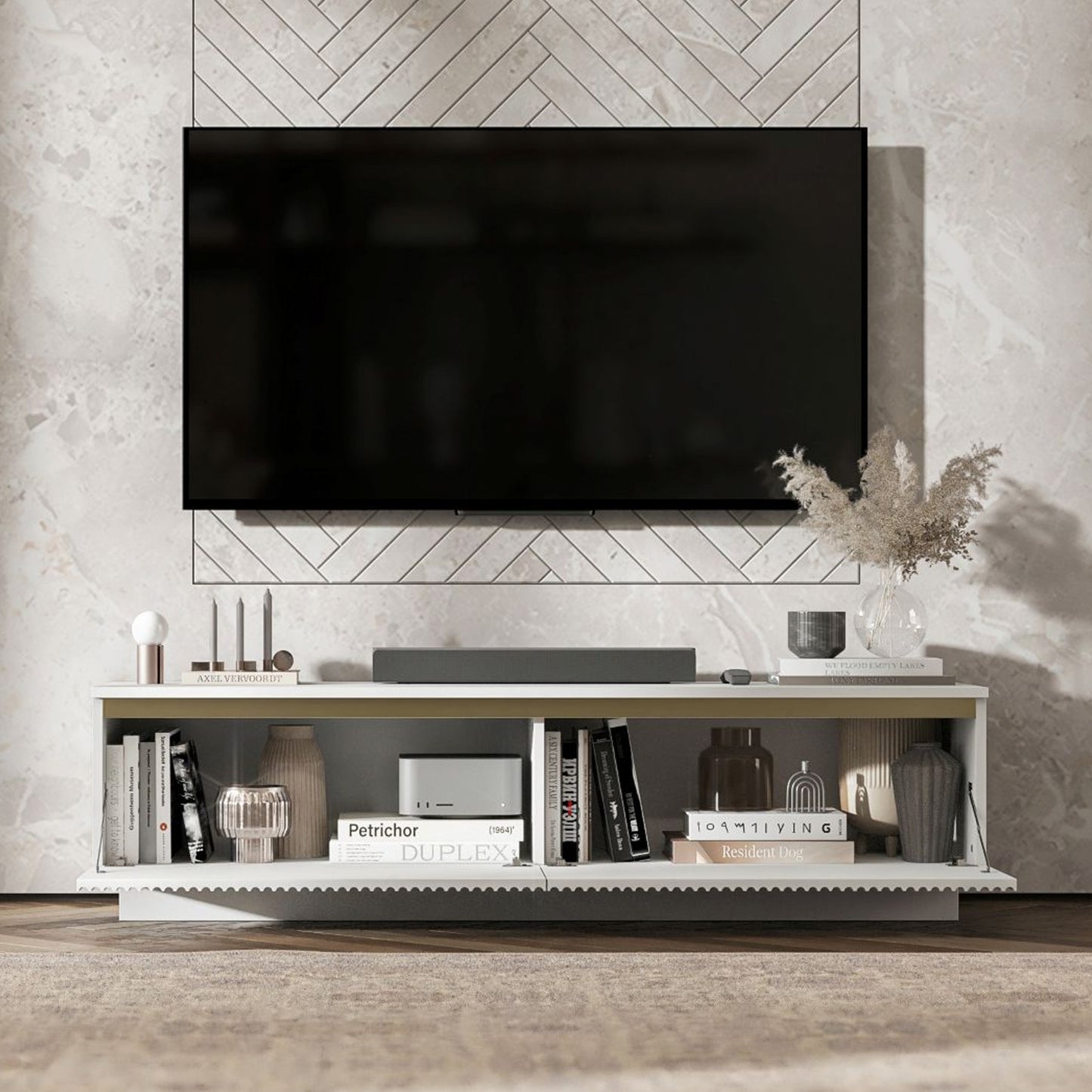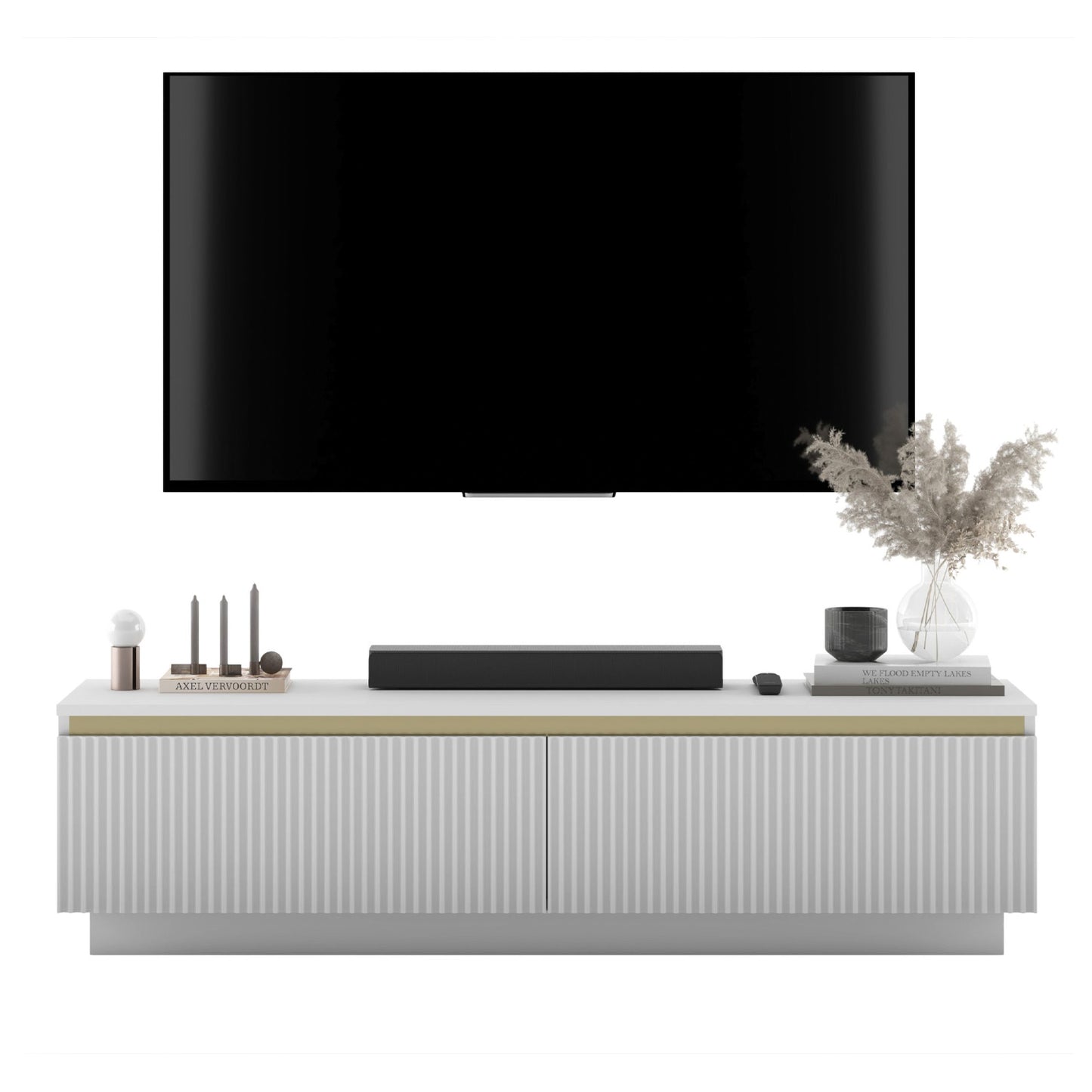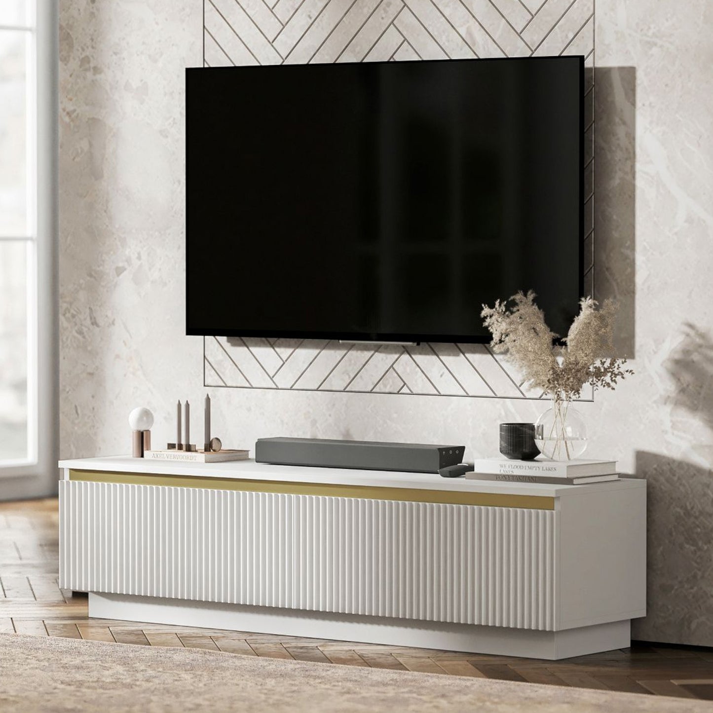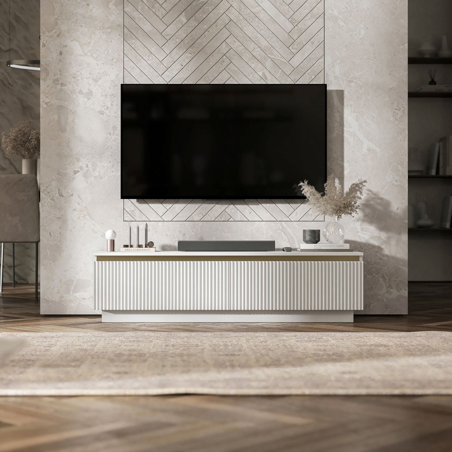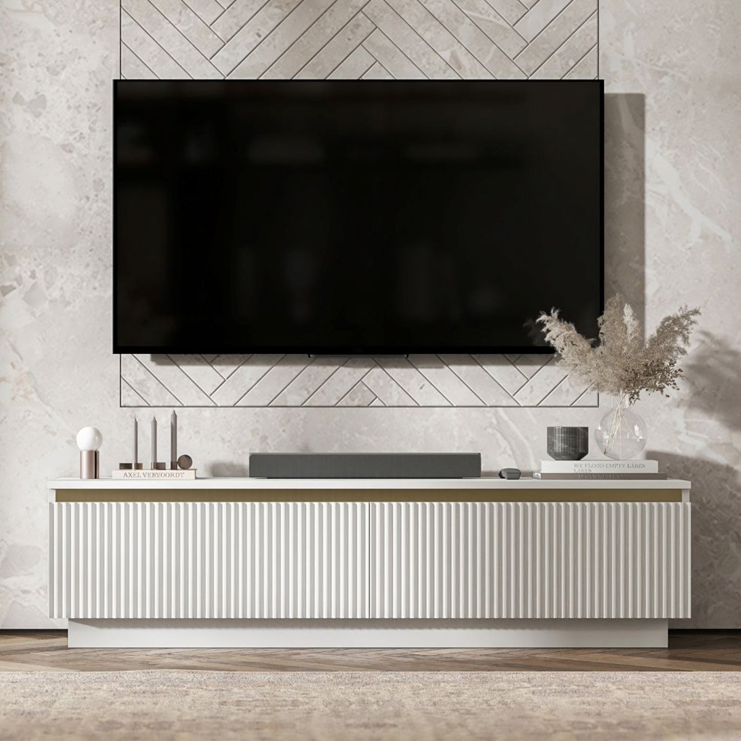 Selene Modern Ribbed-Texture Free Standing TV Unit with Storage - White
