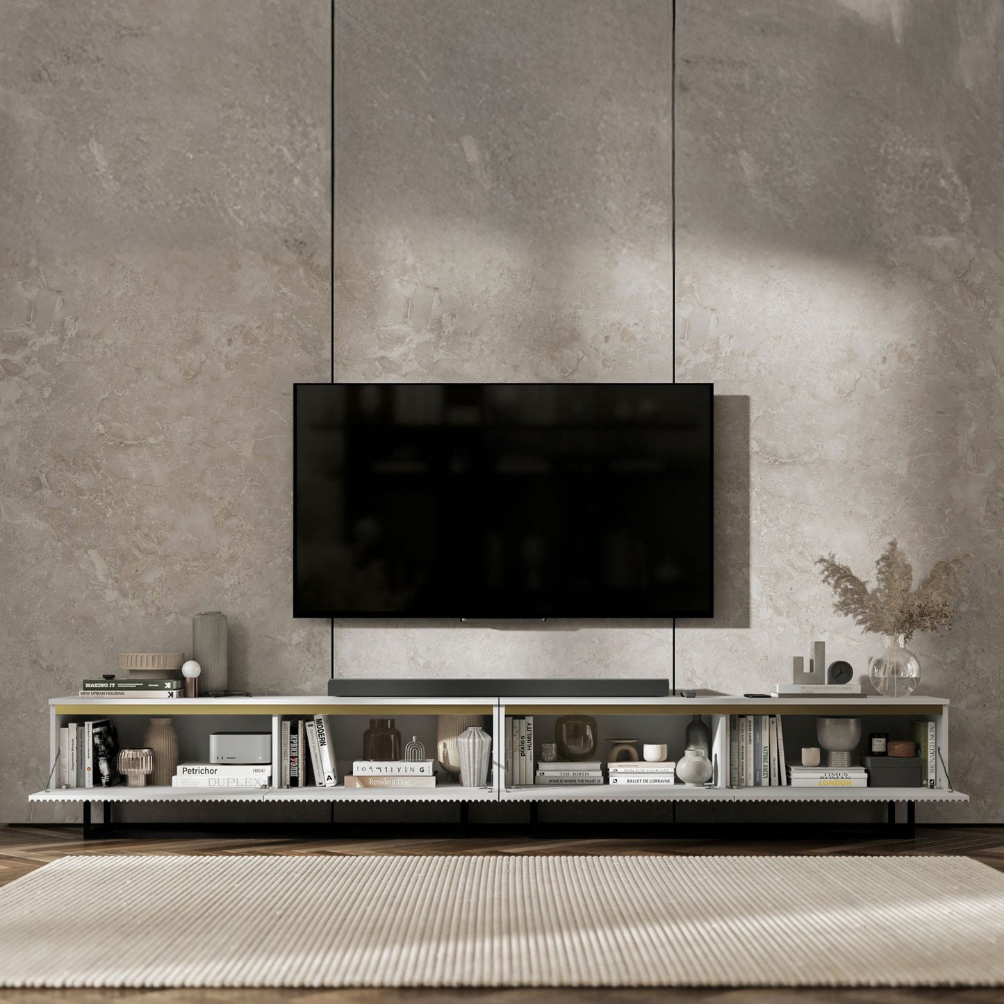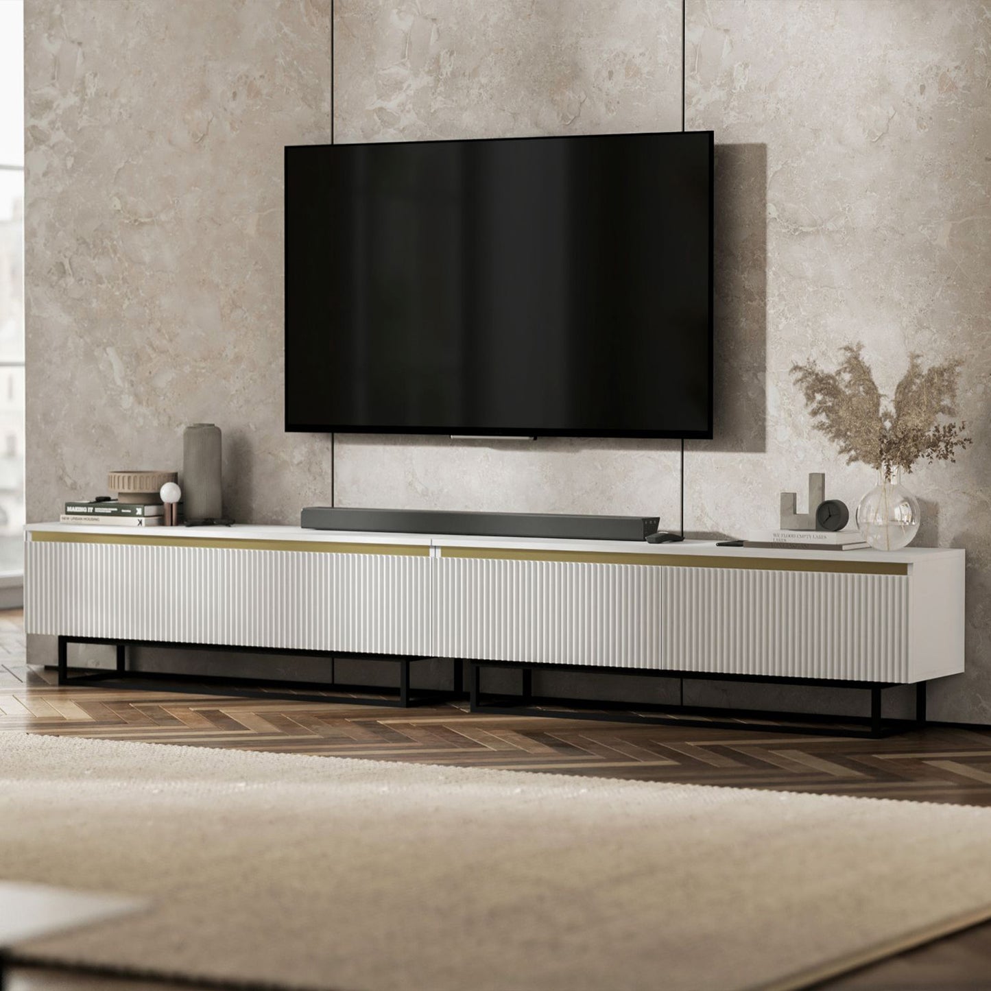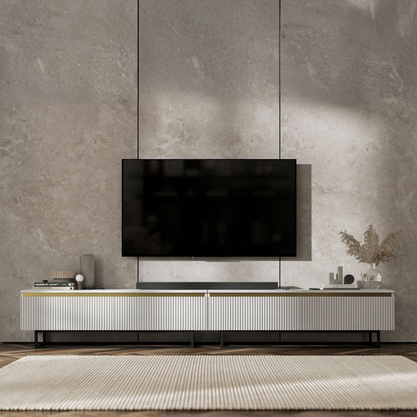 Bring modern sophistication to your living space with the Selene TV Cabinet – a sleek fusion of contemporary design and practical storage. Featuring a wide profile with fluted front panels, this piece makes a bold statement while maintaining clean, minimalist appeal.