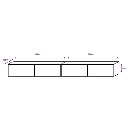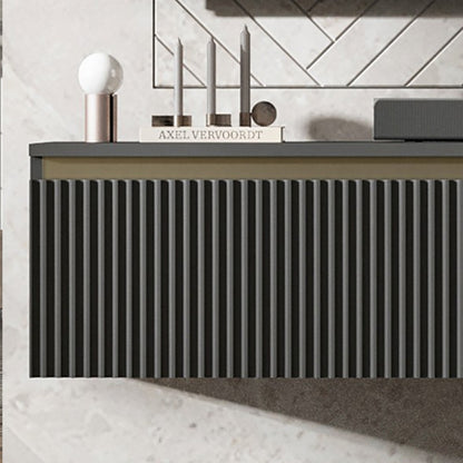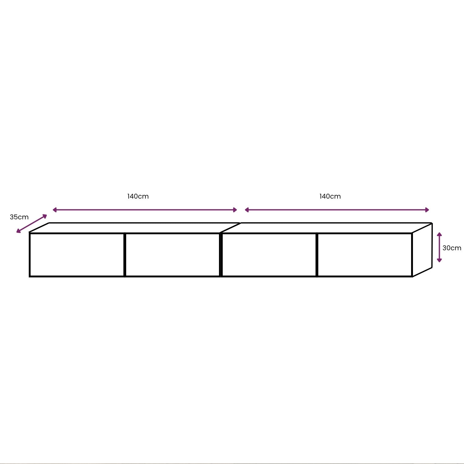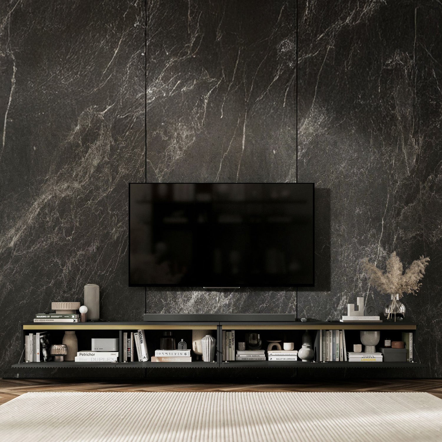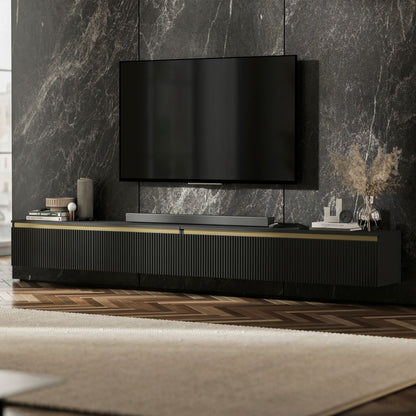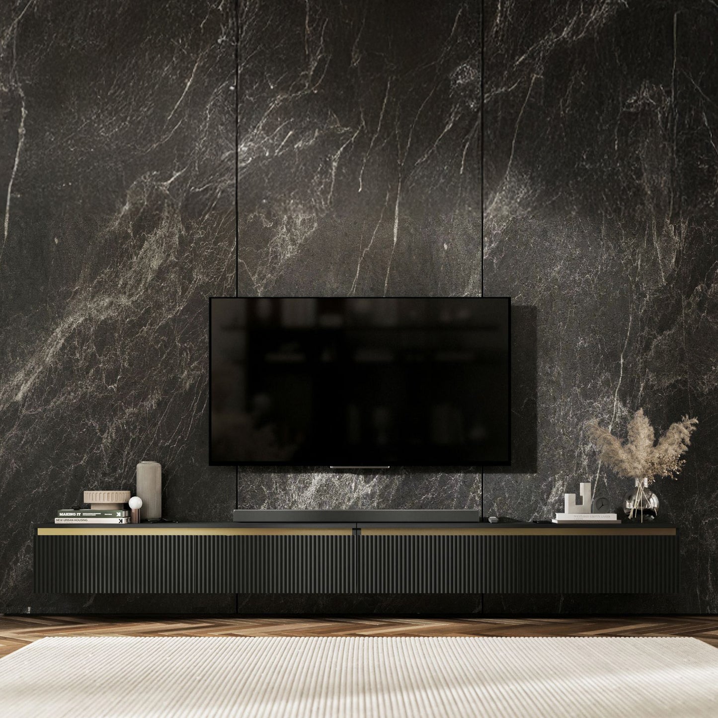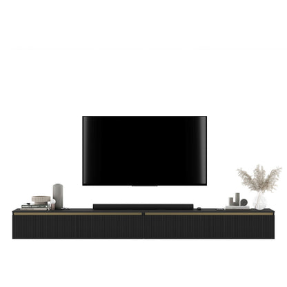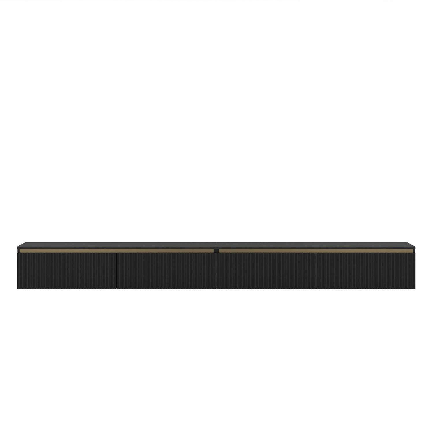 Selene Modern Ribbed-Texture 280 cm Wide Wall-Mounted TV Unit with Storage - Black