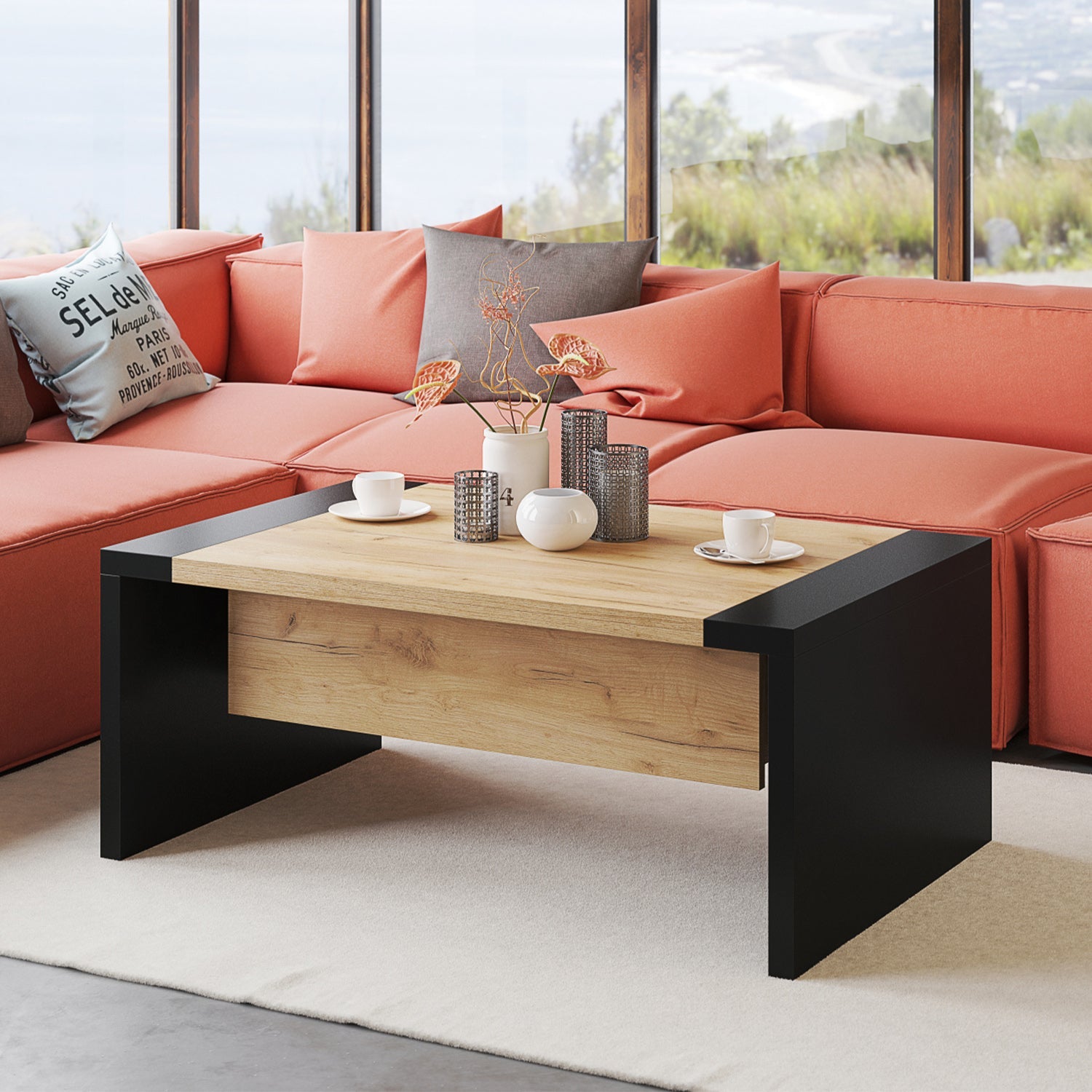 Soffie 2 in 1 Extending Coffee / Dining Table 100-170cm - Gold Craft Oak / Black