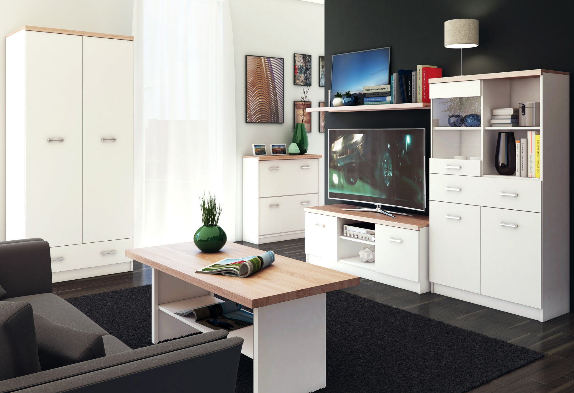 The Top Mix collection is a modern and minimalist furniture series offering a wide range of elements for various rooms, from children's rooms to hallways and living rooms. Available in two colors: timeless Sonoma oak, which fits various styles, and white, perfect for those who prefer modern, Scandinavian-inspired designs. Top Mix offers endless possibilities for interior arrangements!