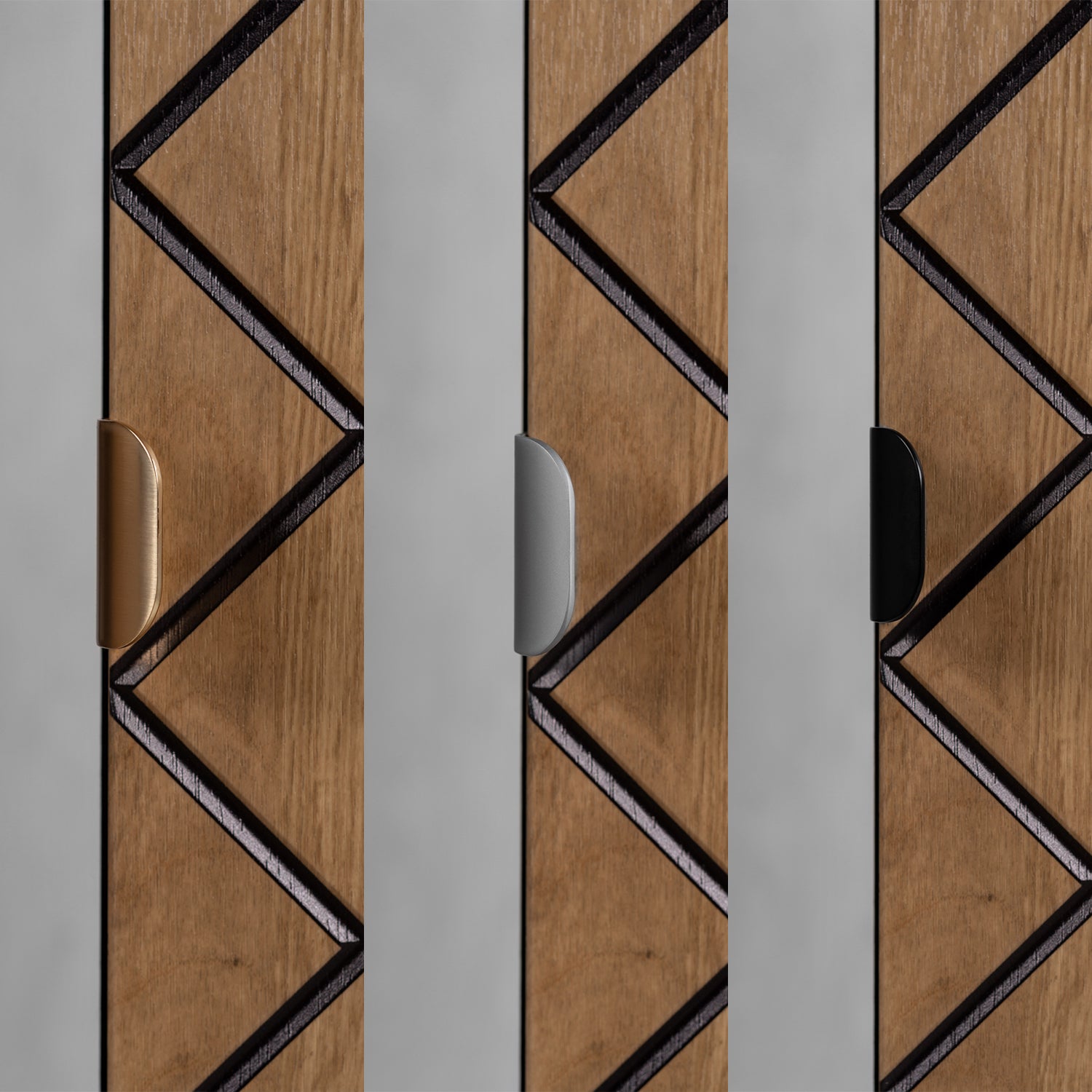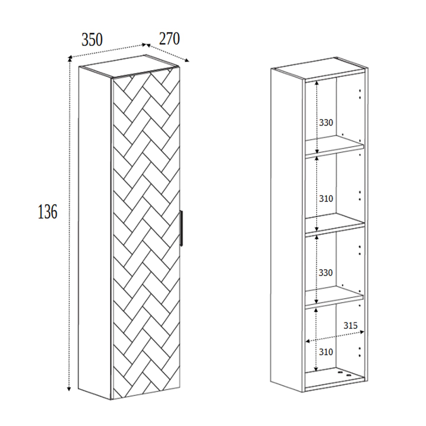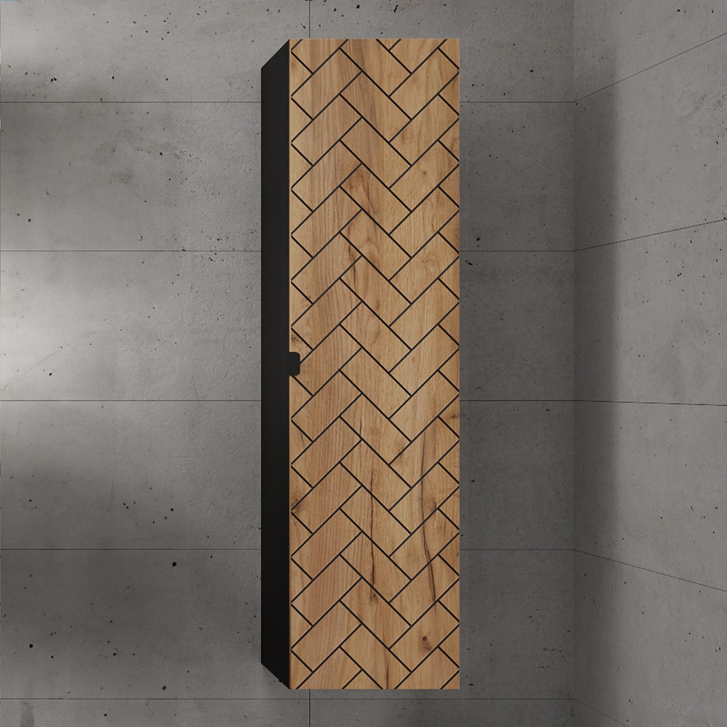Introduce stylish functionality to your bathroom with the Trend Herringbone Pattern Door Tall Bathroom Cabinet. Designed with contemporary appeal in mind, this wall-mounted unit features textured herringbone doors made from high quality MDF, offering both a striking visual element and exceptional durability. With four internal shelves, it provides generous storage for towels, toiletries, and bathroom essentials. A set of 3 interchangeable handles in gold, silver, and black is included, so you can personalise the finish to suit your space.