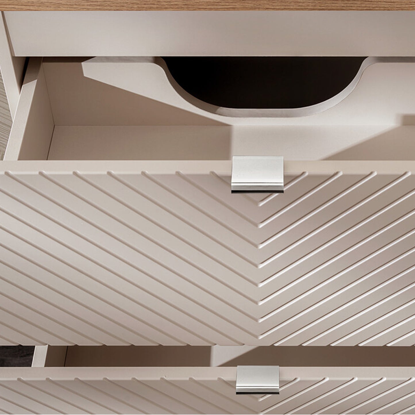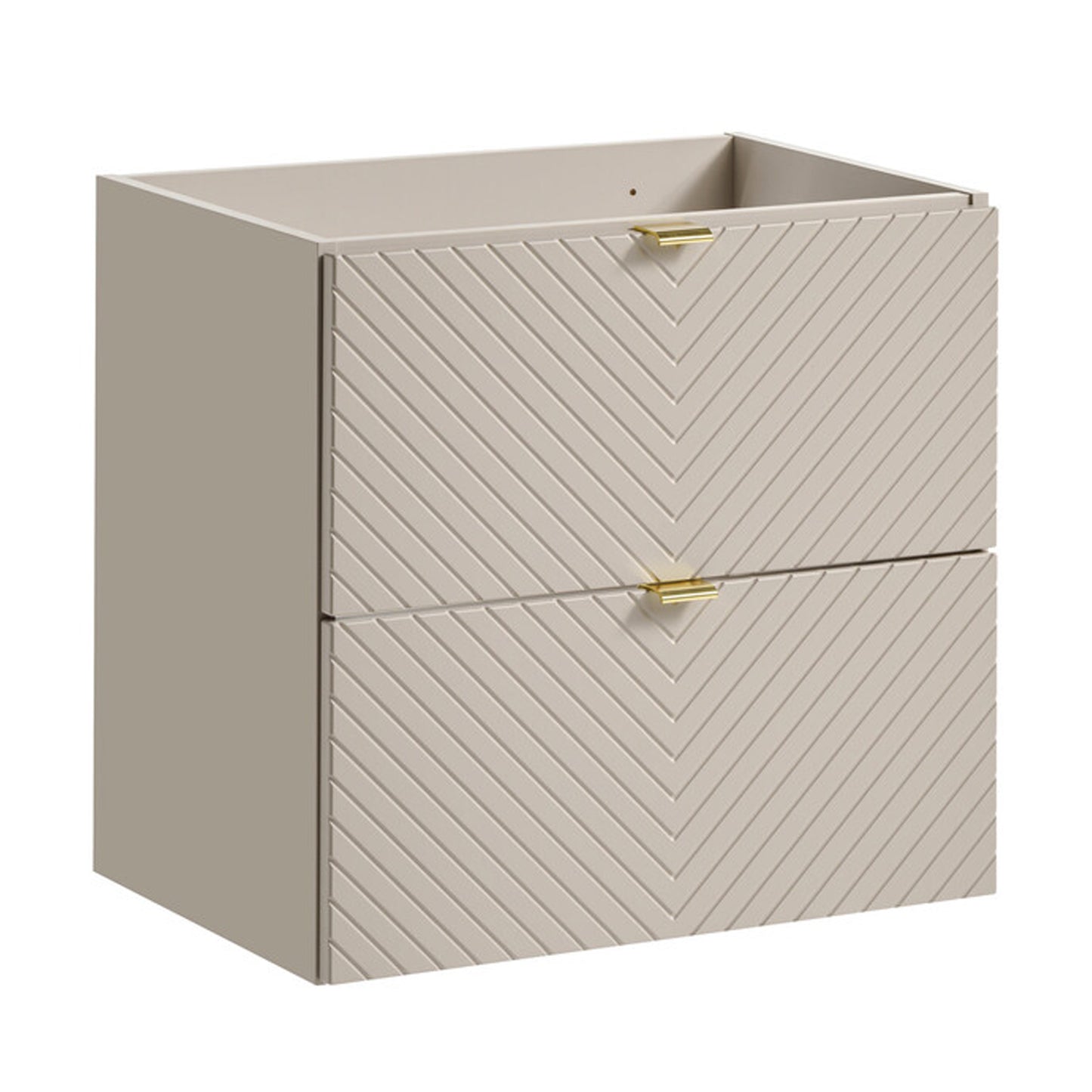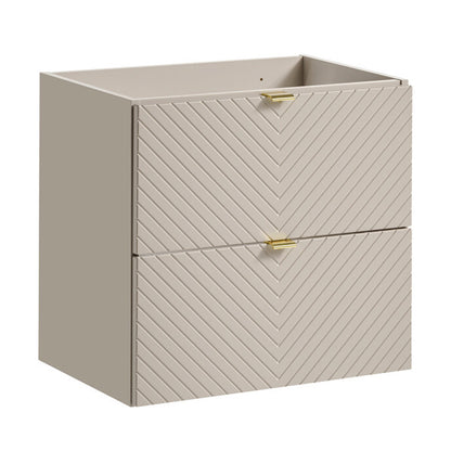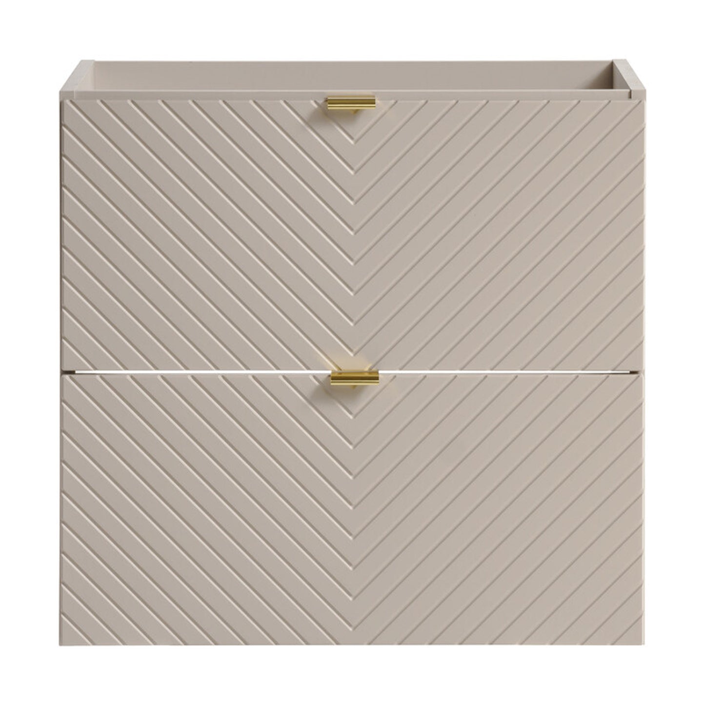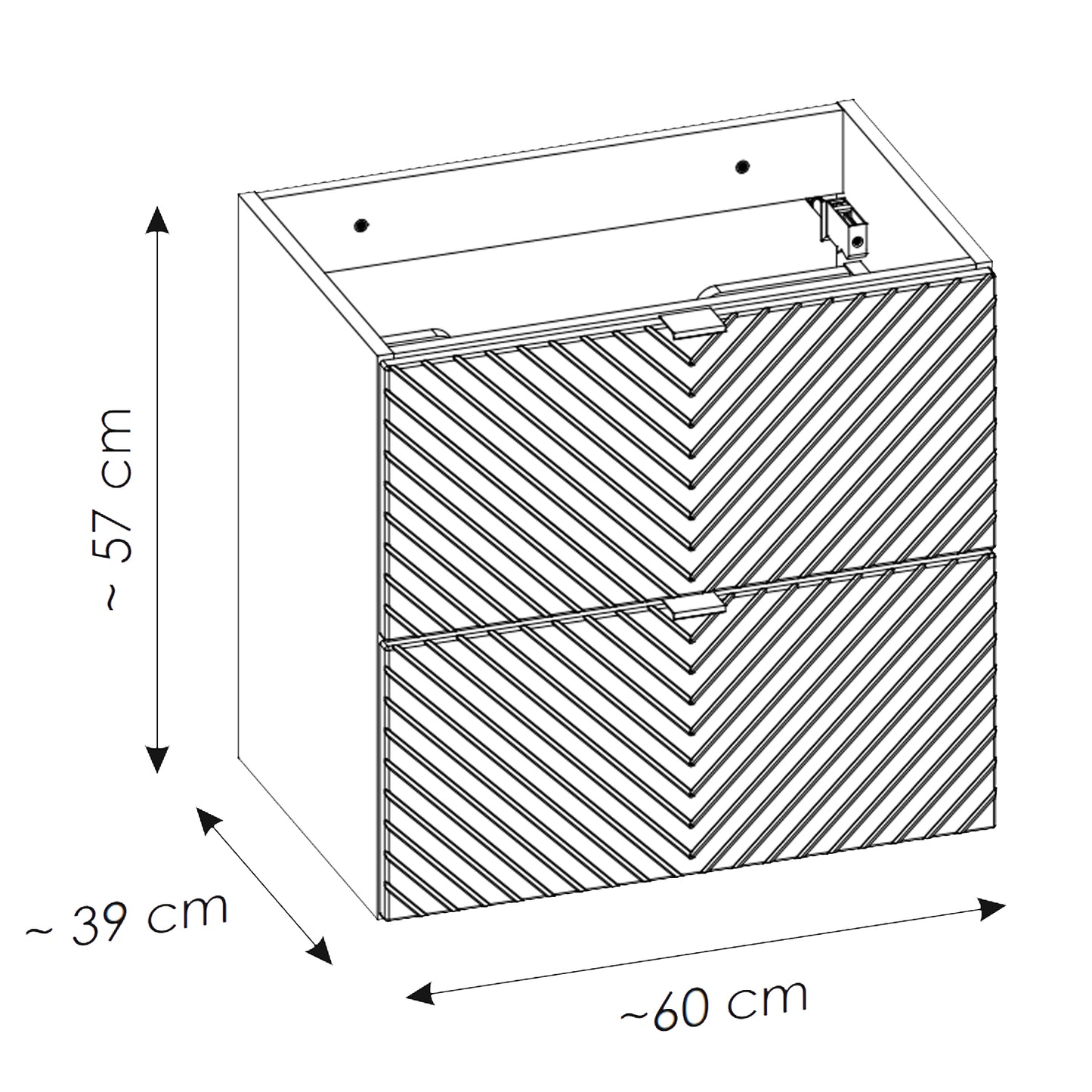 Viva 60cm Bathroom Vanity Unit, a perfect combination of modern style and practical storage. Designed with a sleek, wall-mounted profile, this unit features ribbed fluted drawer fronts arranged in an elegant chevron pattern that adds texture and a designer finish to your space.